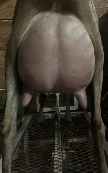 Renfri is yet another stunning Jesuit daughter. She has a beautiful mammary system and is very correct in her dairy wedge shape with correct feet and legs. A fun doe to watch grow up.
